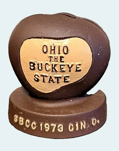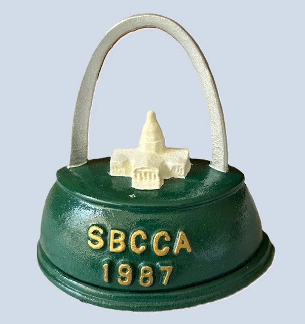 This cast iron bank was designed by Lou Filler. Originally priced at $6.00, the inscription on the bank includes βOhio The Buckeye Stateβ and βSBCC 1973 in Ohio.β It was not uncommon for the earlier banks to use SBCC rather than SBCCA as the club identifier.