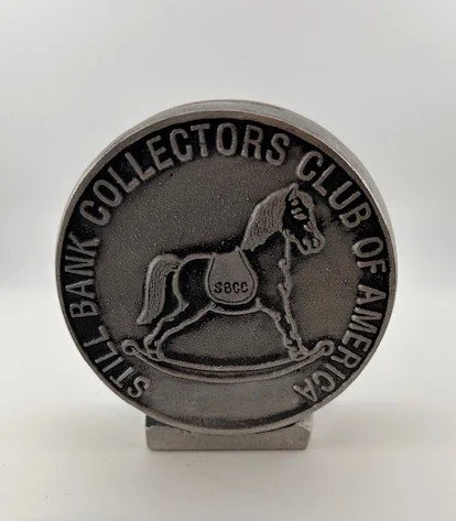 In 1972 the Club produced its first cast iron bank, the Rocking Horse bank, which has also been adopted as the Club symbol. This bank cost $30.00 then. It now sells for between $275.00 to $300.00 if you can locate one.